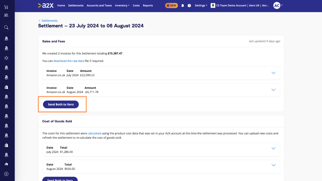 For settlements that include an August and September portion, for example if the Settlement covers 23 July to 13 August, there are a few extra steps you will need to take to ensure your data is accurately posted for each period: