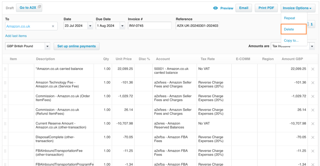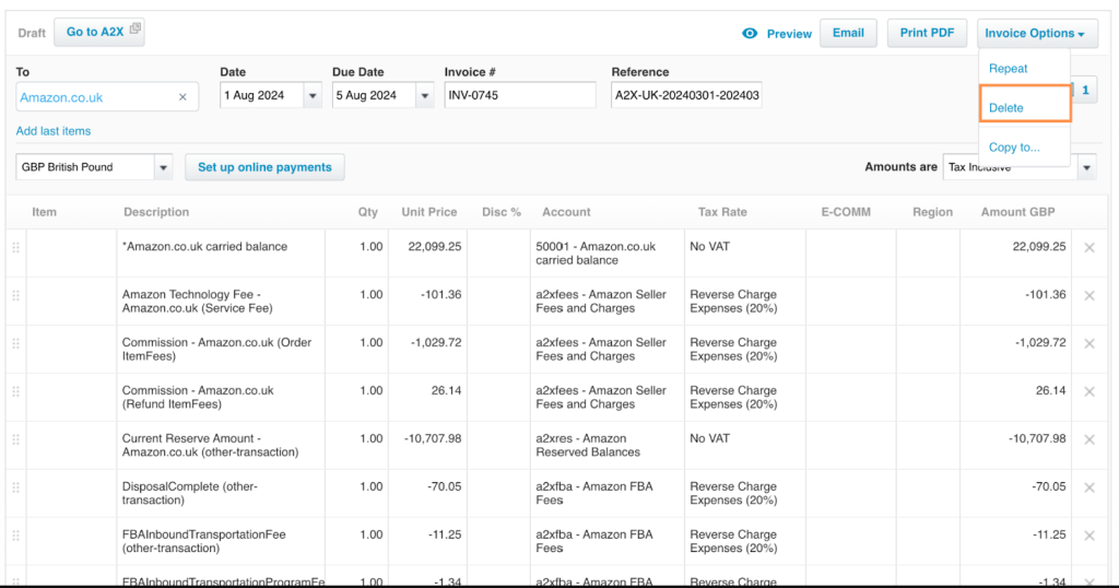 | FBA Fees | 20% reverse charge | 20% Standard expense tax rate |