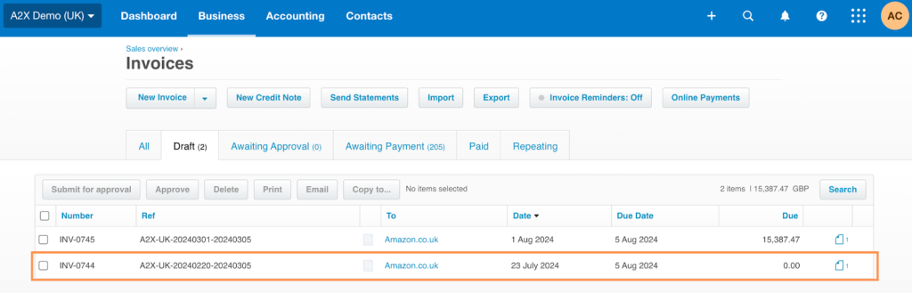 Step 2: Log into your accounting software and find the invoices you’ve just posted.