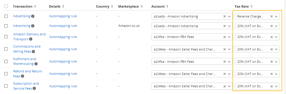 | Amazon Shipping fees (with the exception of 3rd party shipping providers) | 20% reverse charge | 20% Standard expense tax rate |